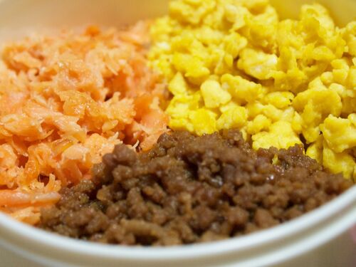 20170323〜三色そぼろ弁当〜 三色そぼろ(挽肉/炒り卵/焼き鮭) 小松菜のナムル カボチャのくるみ和え ピーマンのレモン塩麹 ポンカン ラスク/チョコレート (カフェオレ) 昨日、行事がありました。 昨日、内輪の年中行事『春〜おどりの会〜』というもの…